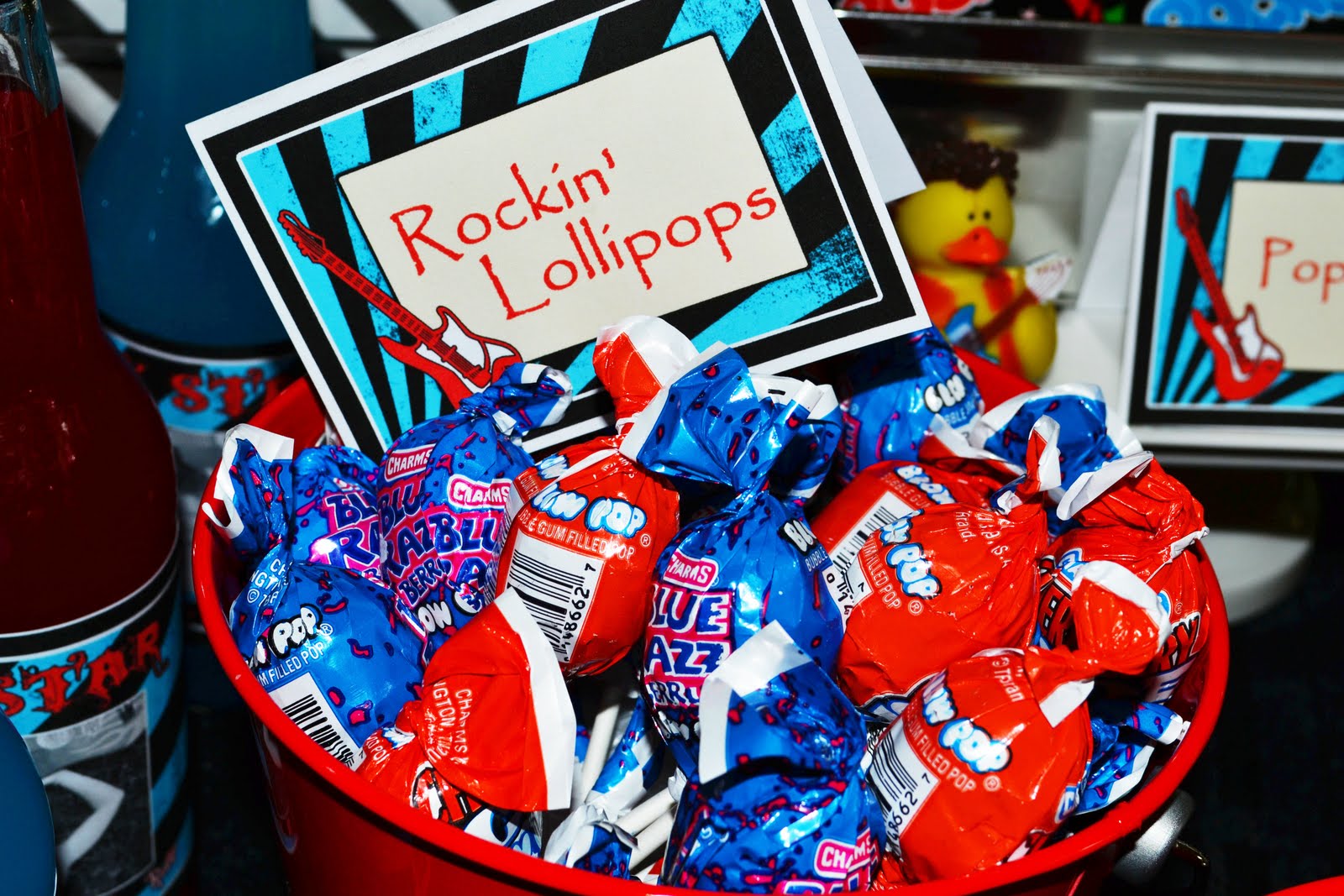 No child can ever leave a party without lots of sugar so we made sure to cover our bases along with some fun items to remember Alex's party like Rock star lip gloss and pencils. My son also LOVES Jones Soda so I had custom labels made for him that turned out awesome!